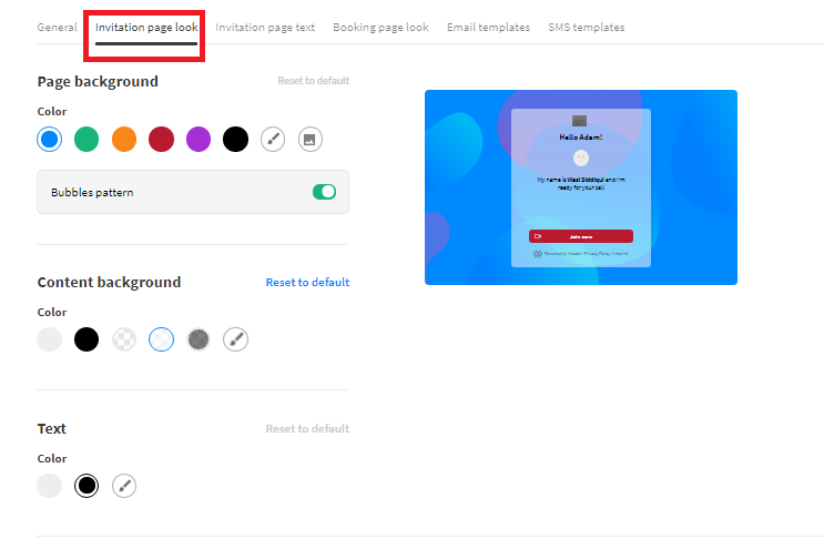 In “Invitation Page Look”, you can customize the appearance or display of the meeting page layout.
