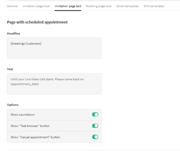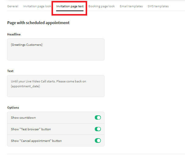 In “Invitation Page Text”, you can decide what text to display whether in the scheduled or unscheduled appointment.