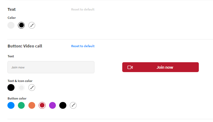 - Button: Video Call: Click this button to join a live video call. You can decide what text to display on the button, change icon, text, and button colors.