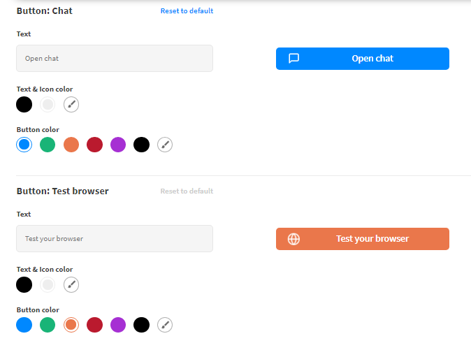 - Button: Test Browser: Click this button to verify if your browser settings are ready and in order. You can decide what text to display on the button, change icon, text, and button colors.